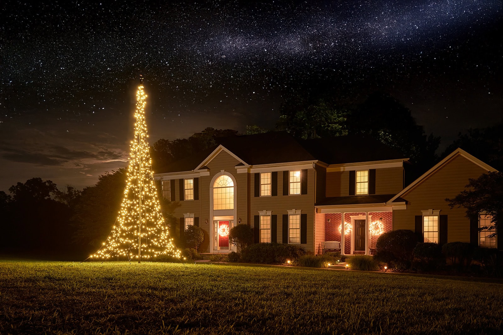 Haben Sie keine (Tannen-)Bäume oder andere Objekte in Ihrem Garten, die schön mit Weihnachtsbeleuchtung außen dekoriert werden können? Dann ist ein Fahnenmast Weihnachtsbaum eine clevere Alternative, um Ihren Garten mit einem wunderschönen Blickfang in eine zauberhafte Weihnachtsstimmung zu versetzen. Natürlich ist eine Fahnenmast Weihnachtsbeleuchtung auch prima als stimmungsvolle Ergänzung zu Ihrer bestehenden Weihnachtsbeleuchtung in Bäumen und Pflanzen zu verwenden, so holen Sie noch mehr Weihnachtsbeleuchtung Spaß in Ihren Garten.