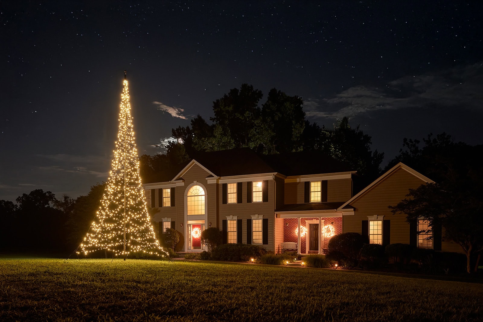Haben Sie keine (Tannen-)Bäume oder andere Objekte in Ihrem Garten, die schön mit Weihnachtsbeleuchtung außen dekoriert werden können? Dann ist ein Fahnenmast Weihnachtsbaum eine clevere Alternative, um Ihren Garten mit einem wunderschönen Blickfang in eine zauberhafte Weihnachtsstimmung zu versetzen. Natürlich ist eine Fahnenmast Weihnachtsbeleuchtung auch prima als stimmungsvolle Ergänzung zu Ihrer bestehenden Weihnachtsbeleuchtung in Bäumen und Pflanzen zu verwenden, so holen Sie noch mehr Weihnachtsbeleuchtung Spaß in Ihren Garten.