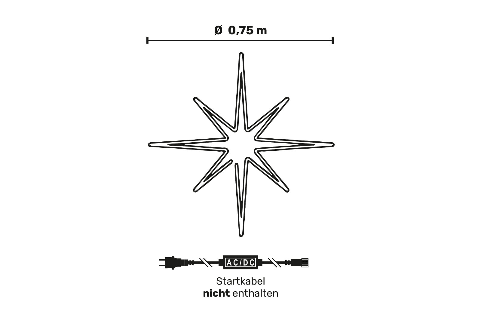 | Durchmesser Weihnachtsbeleuchtung Schneeflocke | : | Ø 75 cm |