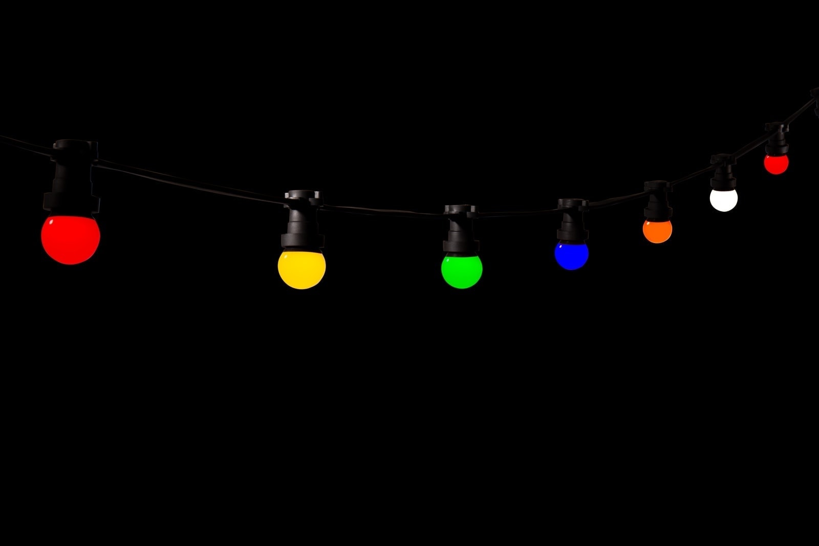 | 10 Meter / 30 Fassungen | 5x rot, 5x gelb, 5x grün, 5x blau, 5x orange, 5x weiß | Sie erhalten also insgesamt 30 Lampen |